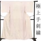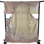 訪問着 身丈167.5cm 裄丈68cm L 袷 日本刺繍 胡蝶蘭 刺繍 金糸 ピンクベージュ 正絹 逸品 中古