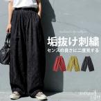 ペイズリー刺繍 バレルレッグパンツ レディース ワイド 送料無料・メール便不可