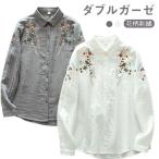 ダブルガーゼ コットンシャツ レディース ガーゼシャツ コットン 刺繍シャツ ナチュラル 可愛い シャツ 花柄 刺繍 ブラウス トップス 長袖 森ガー