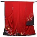 特選品 手刺繍振袖 仕立付き 四季花文 赤色 f-784 尾峨佐染繍 古典柄 正絹振袖 新品 総刺繍