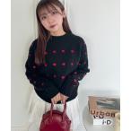 ニット セーター ハート刺繍ケーブルニットトップス レディース
