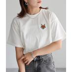 tシャツ めがねキツネ胸刺繍半袖Tシャツ レディース