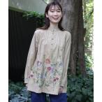 ブラウス シャツ ソフトコーデュロイスタンディングフラワー刺繍チュニックブラウス レディース