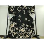 平和屋本店■極上 訪問着 友禅 駒刺繍 吉祥花文 縮緬地 黒地 金彩 逸品 未使用 DZAA4119kh5