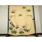 平和屋着物●野口彦太郎 大彦三代目 江戸染繍友禅 訪問着 手描き 刺繍 シクラメン 卵色地 金糸 大丸扱い 正絹 逸品 AABE0175cs