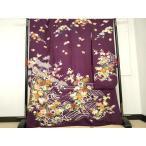 平和屋着物●創業460年・千總 振袖 誰が袖好み 駒刺繍 松竹梅花文 桑の実色地 金彩 正絹 逸品 AABE0177cs