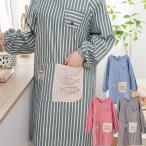 割烹着 かわいい おしゃれ 通販 かっぽう着 エプロン スモック 大人 保育士 長袖 袖付き シンプル ストライプ ポケット 料理 キッチン ガーデニング ロング かっぽうぎ カッポウギ キッチンファブリック 配膳用
