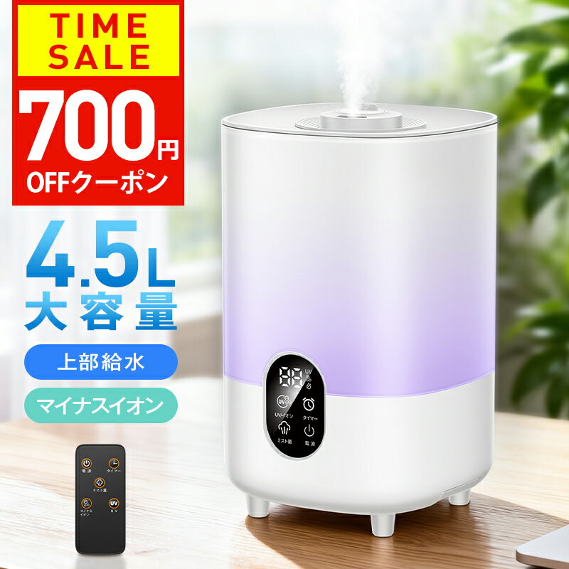 加湿器 卓上 超音波加湿器 大容量4.5L UVライト 浄水フィルター 上部給水 アロマ対応 3段階加湿調節 空気清浄 省エネ xr-re05