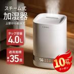 蒸気式加湿器 4.0L 大容量 スチーム式 上から給水可能 最大35畳対応 ガラスタンク 高温除菌 蒸気 卓上/オフィス用 静音 省エネ ホワイト オシャレ お手入れ簡単