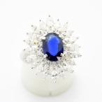 ミャンマー産非加熱ブルースターサファイア 21.67ct リング 16号 PT900 プラチナ ダイヤモンド 指輪 カボション ダイヤ取り巻き 非加熱サファイア ビルマ産 大粒 9月誕生石 ノーヒート/unheated 産地証明 <AIGS鑑別書>【中古】【ジュエリー】【送料無料】RYB.KA