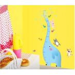 ウォールステッカー ぞうさんと動物の身長計 壁紙シール かわいい象 測れる 子どもの成長記録 ブルー