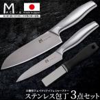 包丁 3点 セット MAC+a MA-NS3 日本製 三徳包丁 ペティナイフ シャープナー 包丁研ぎ器 包丁研ぎ ステンレス 一体成型 両刃 マック オールステンレス