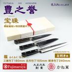 高級名入れ包丁豊之誉 御結婚祝い特別開運ギフト 福(ふくふく)セット「宝珠」/三徳包丁180mm、出刃包丁165mm、刺身包丁 240mm(左利き用)|かね萬