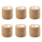 自着性テープ 包帯 テーピング エラスチック バンデージ 自己粘着 伸縮包帯 弾性(ベージュ6巻入, 2.5cmx4.5m)