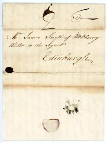 1751年、エディンバラ行きの包装紙。珍しい「パース・ラム」の黒のハンドスタンプが押されている。