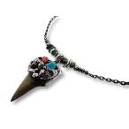 サメの歯の化石 ビーズ チェーンネックレス ペンダント シルバー925 インディアンジュエリーターコイズ燻しあずきチェーン3.5mmx47cm ナバホ ホピ コイン INCA
