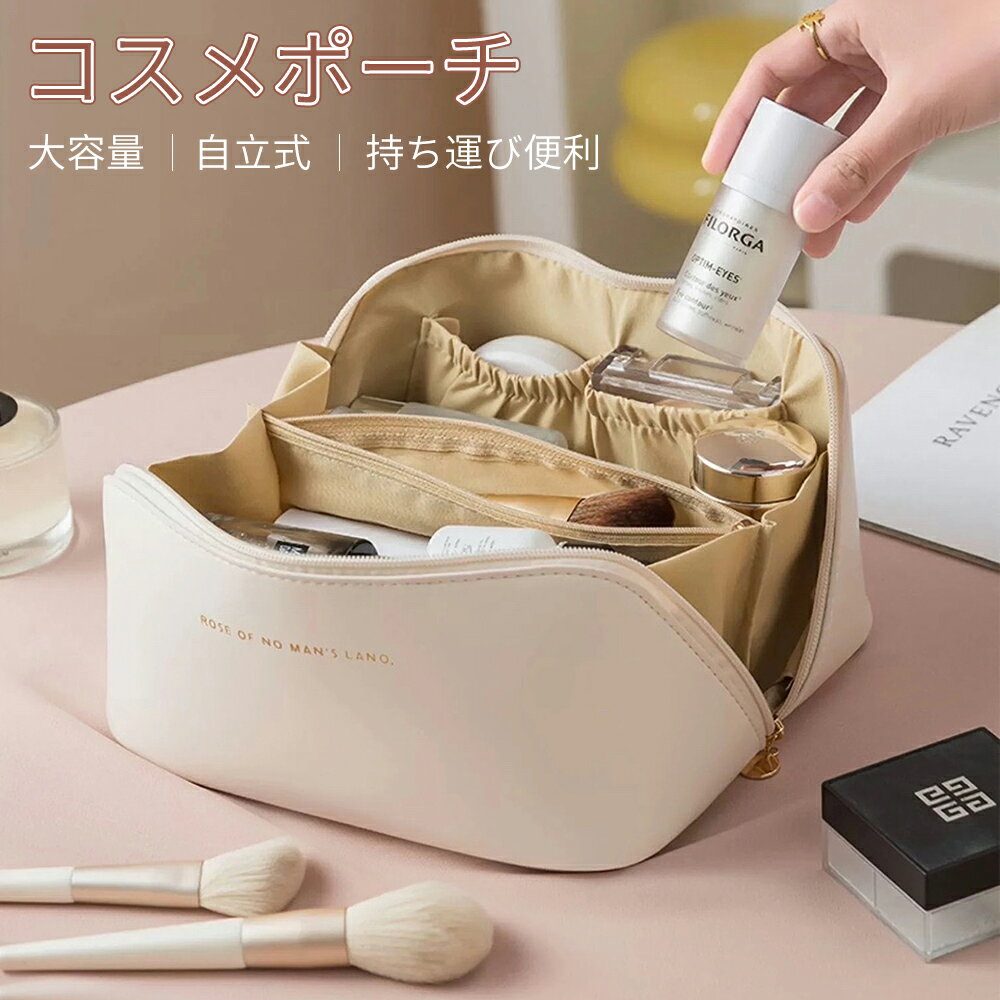 \10%OFFクーポン/化粧ポーチ コスメポーチ 機能的 大容量 旅行用 収納 コンパクト メイクポーチ かわいい 仕切り バニティポーチ ブラシ入れ ファスナー PUレザー コスメ おしゃれ 軽量 軽い ポーチ 小物入れ 旅行 仕切り 防水