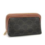 セリーヌ スモール コスメティックポーチ 4M1622CZJ.04LU トリオンフキャンバス カーフスキン タン コスメポーチ 小物入れ 中古 送料無料