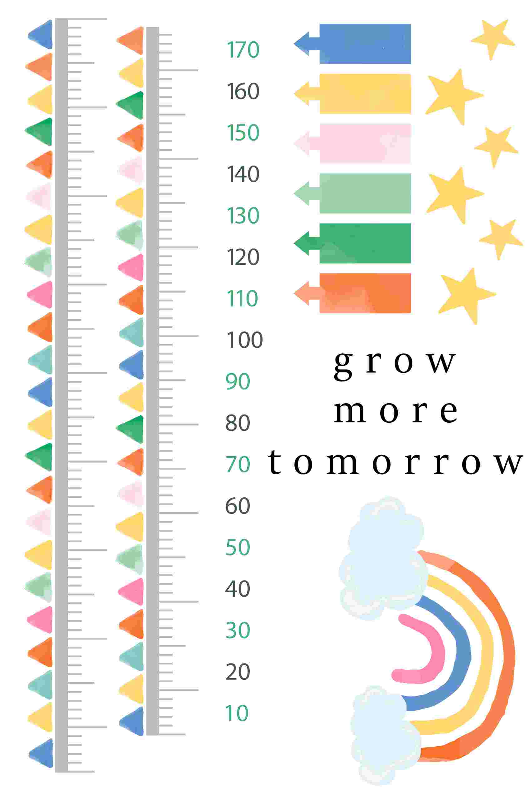 ウォールステッカー 身長計 メモ付き 記念 目盛り 子供部屋 動物 北欧 90×60cm シール式 装飾 おしゃれ 壁紙 はがせる 剥がせる 虹 カラフル かわいい 032469