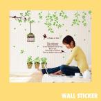 ウォールステッカー 木と鳥かご・鳥・鉢植え グリーン 北欧 ガーデニング かわいい おしゃれ