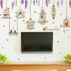 ウォールステッカー おしゃれ 植物 木と鳥かご 花 紫色 アイビー ウォールシート 壁紙シール カフェ モダン 木 巣箱 ドア 小鳥 鳥 木 北欧 窓 紫 蝶 鳥籠 vr0807