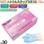 ニトリル手袋 ニトリルステップ3 ブルー パウダーフリー SS 【507】 3000枚(100枚30小箱)/ケース 使い捨て手袋 ニトリルグローブ 業務用 調理用 介護用
