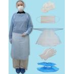 【使い捨て感染症対策キット】キャップ・マスク・袖付エプロン・プラテ・シューズカバー5点 (100セット)1セットあたり\\111.69