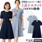 フォーク ワンピース 医療事務 受付 接客 クリニック メディカル かわいい 事務服 制服 ユニフォーム ホワイト ブルー ネイビー S M L LL 3L FOLK fo-3025sc