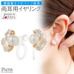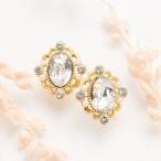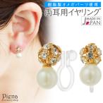 イヤリング ノンホールピアス 両耳用 レディース 樹脂オメガ 日本製 パール ラインストーン ミラーボール ドレスに合う 小ぶり 煌めく 爆買