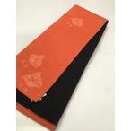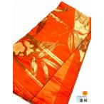 中古40%OFF/中古 半幅帯 正絹 アンティーク 朱色地に竹節文様 六寸 リサイクル着物 中古着物