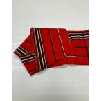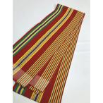 中古40%OFF/中古 半幅帯 正絹 赤色地に縞文様 単帯 あすつく シーズン秋