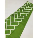中古40%OFF/中古 半幅帯 化繊 グリーン地に桧垣文様 リバーシブル あすつく