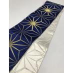 中古40%OFF/中古 半幅帯 化繊 踊り用 濃紺地に麻の葉文様 リバーシブル あすつく