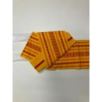 中古40%OFF/中古 半幅帯 化繊 萱草色地に木目文様 リバーシブル あすつく