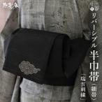 半幅帯 正絹 博多織 リバーシブル 浴衣帯 紋小巾袋帯 黒 菊 羽 お洒落 カジュアル 博多織求評会 受賞作品 お取り寄せ 受注生産 No.88-3070