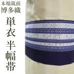 本場筑前博多織 単衣四寸 半幅帯 ネイビー 変浮織 ゆかた帯 4.3寸 日本製 森博多織物