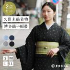 久留米織 木綿着物 2点 セット 博多織 半幅帯 ROCCA 六花 日本製 着物 洗える着物 レディース 簡単 帯 正絹 小袋帯 献上柄 洗える きもの 木綿 普段着 小さい