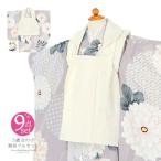 七五三 着物 3歳 女の子 被布セット「オフホワイト 藤鼠色、雪輪取りに八重菊」三歳女児被布セット 子供着物 フルセット 三才のお祝い着 3才向け(メール便不可)