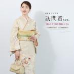 レンタル 訪問着 フルセット 七五三 卒業式 卒園式 入学式 入園式 母 ママ お茶会 ベージュ 松竹梅 鹿の子 着物 袋帯 草履 バッグ 創美苑