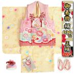 京都室町st. 七五三 着物 7歳 フルセット 女の子 購入 正絹 刺繍 絵羽付け着物と結び帯 コーディネートセット「淡黄色、鼓」IYS959i26848ZZ