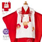 七五三 着物 3歳 女の子「白×赤 手鞠、梅」正絹 三歳女児被布セット 子供着物 フルセット 三才のお祝い着 3才向け(メール便不可)