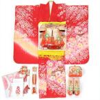 七五三 7歳 四つ身着物フルセット「赤紅 桜に檜扇」女の子 7才 女児用 子供着物 七才のお祝い着向け(メール便不可)