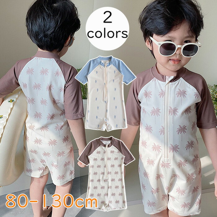 「送料無料」キッズ 水着 男の子 2点セット ロンパース キャップつき ベビー みずぎ UVカット 半袖ラッシュガード キッズ 水着 赤ちゃん 子供 かわいい スイムウェア ベビー服 赤ちゃん 水着 オールインワン スイミング 幼稚園 保育園