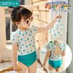 水着 3点セット 子供用 キッズ ベビー 女の子 スイムウェア 上下セット セパレート 帽子付き 半袖 ラッシュガード 花柄 フラワー 水泳帽 バック