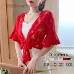 ラッシュガード カーディガン レディース 夏 きれいめ 半袖 ショート トップス レース フリル リボン ボウタイ 冷房対策 大きいサイズ 6色 カジュアル 着痩せ