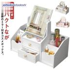 コスメボックス メイクボックス 鏡付き 引き出し付き 卓上収納 ラック 収納棚 ミラー 化粧鏡付き 化粧品収納ケース 木製 白 化粧台コンパクトドレッ