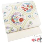名古屋帯 なごや帯 単衣帯 中古 リサイクル 正絹 仕立て上がり 綴れ 蜀江文 花鳥の図 オフホワイト 多色 金銀 きもの北條 A1302-14