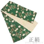 半幅帯 浴衣帯 ゆかた帯 桐生織 正絹 緑 白 カブ かぶ 蕪 野菜 葉 浴衣 おしゃれ 単衣帯 単衣 細帯 日本製 カジュアル 小紋 紬 No.6-1803