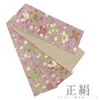 半幅帯 浴衣帯 ゆかた帯 桐生織 正絹 紫 薄鼠色 黄緑 葡萄 ブドウ 桜 花びら 苺 イチゴ 和柄 浴衣 おしゃれ 単衣帯 単衣 細帯 No.6-1815