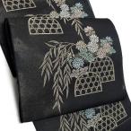 (Prices down3)夏絽 名古屋帯「黒色 籬に菊花」九寸名古屋帯 未仕立て 洒落帯 小紋、紬、お洒落着に 六通柄<T>ss2512ong35
